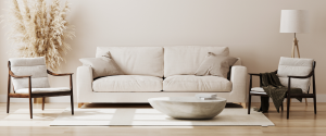 Consejo Movalia: apuesta por un sofá en lino crudo o una alfombra tejida a mano para elevar el nivel de calidez del espacio.