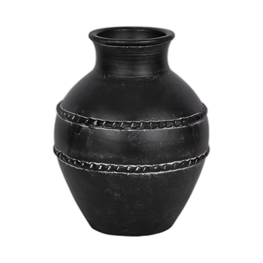 14´´ JARRÓN DE TERRACOTA TRADICIONAL, NEGRO