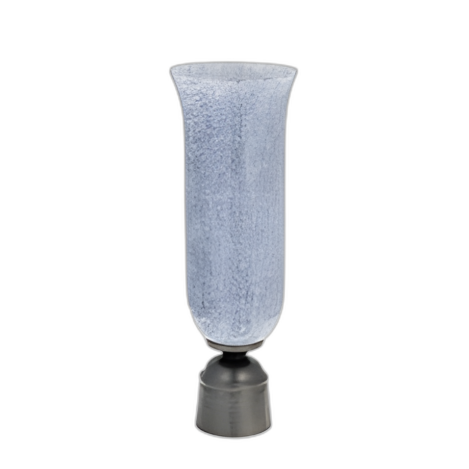 16´´ , JARRÓN DE VIDRIO CON BASE DE METAL, AZUL