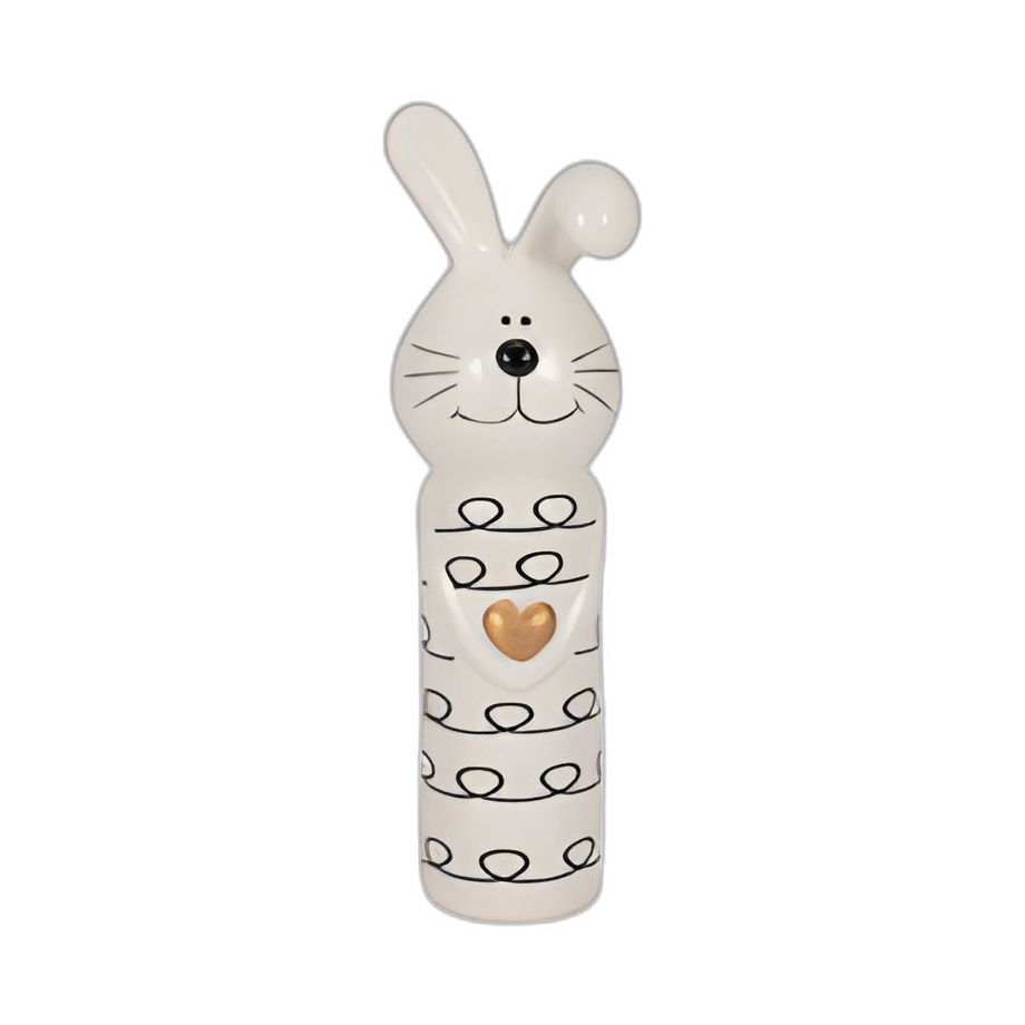 7´´ CONEJITO ONDULADO CON CORAZÓN DORADO, BLANCO/NEGRO