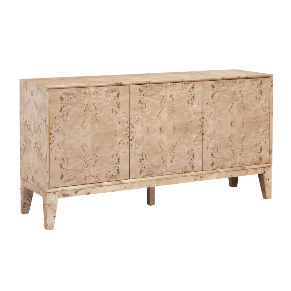 Este aparador, de hermosa elaboración y elegante diseño, realza el estilo y la funcionalidad de cualquier espacio. Es reconocido por su exquisito uso de chapas de madera de mappa, que le confieren un atractivo visual único y cautivador.