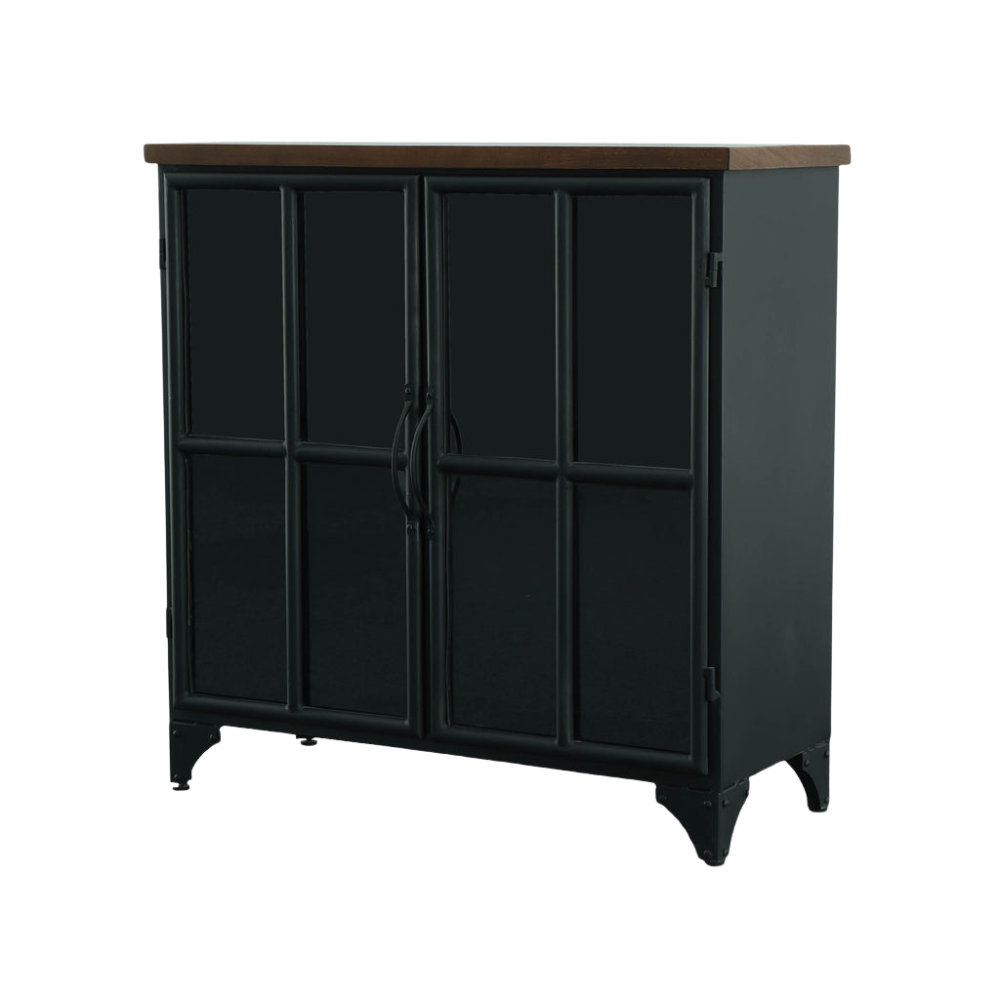 Su amplio espacio de almacenamiento le otorga a este aparador su funcionalidad, mientras que su llamativo acabado negro y su superficie de madera marrón intenso realzan su diseño audaz. La superficie está hecha de madera de mango de origen natural, mientras que la base negra está hecha de hierro reciclado. Rústica y robusta, esta pieza es perfecta para tu hogar.