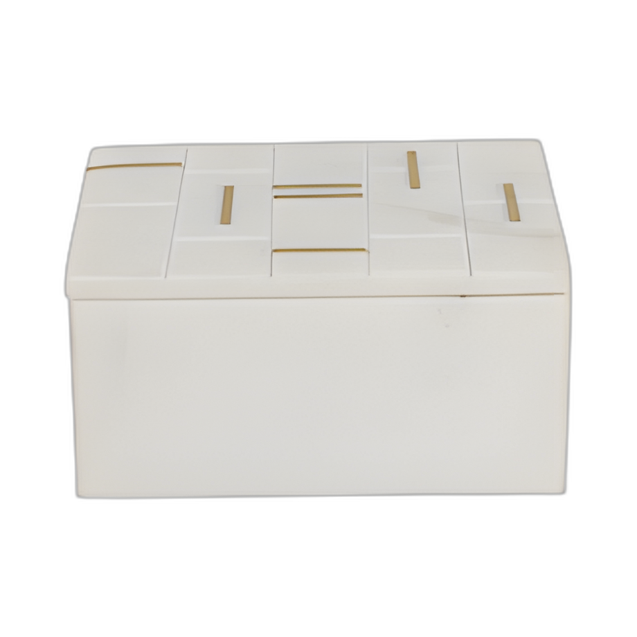 CAJA DE MÁRMOL BLANCO DE 6´´ CON INCRUSTACIÓN DE LATÓN, BLANCO/ORO