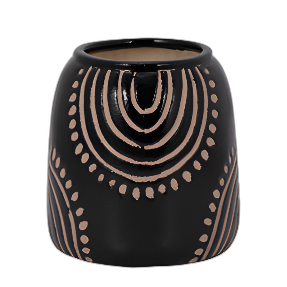 CER, 6´´ JARRÓN DE ARCO TRIBAL, NEGRO/BRONCEADO