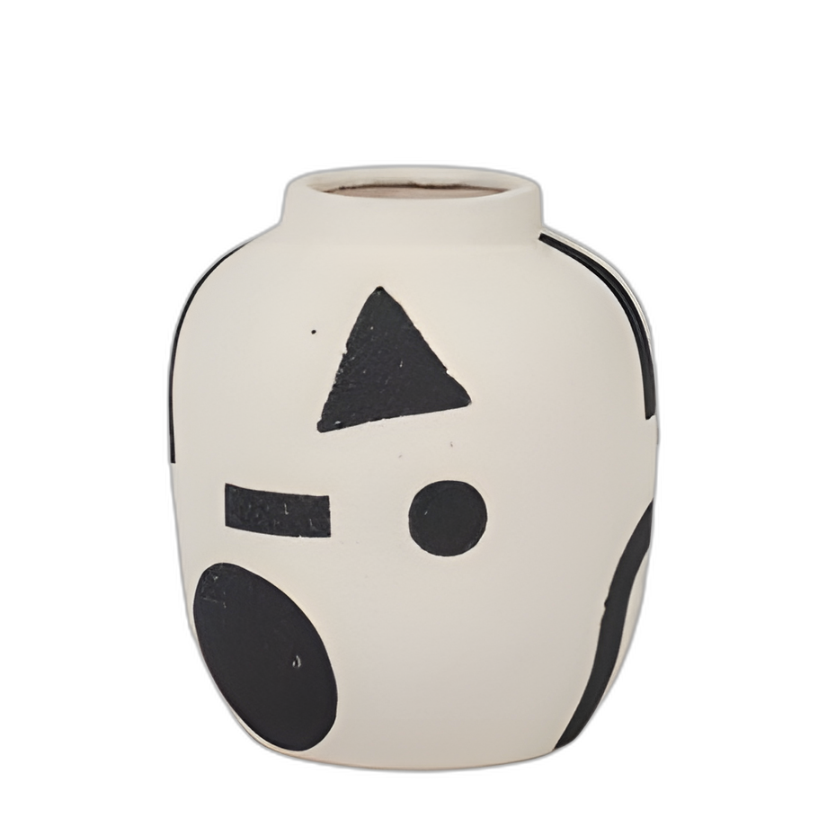 CER, JARRÓN BULBOSO FUNKY DE 6´´ , MARFIL/NEGRO