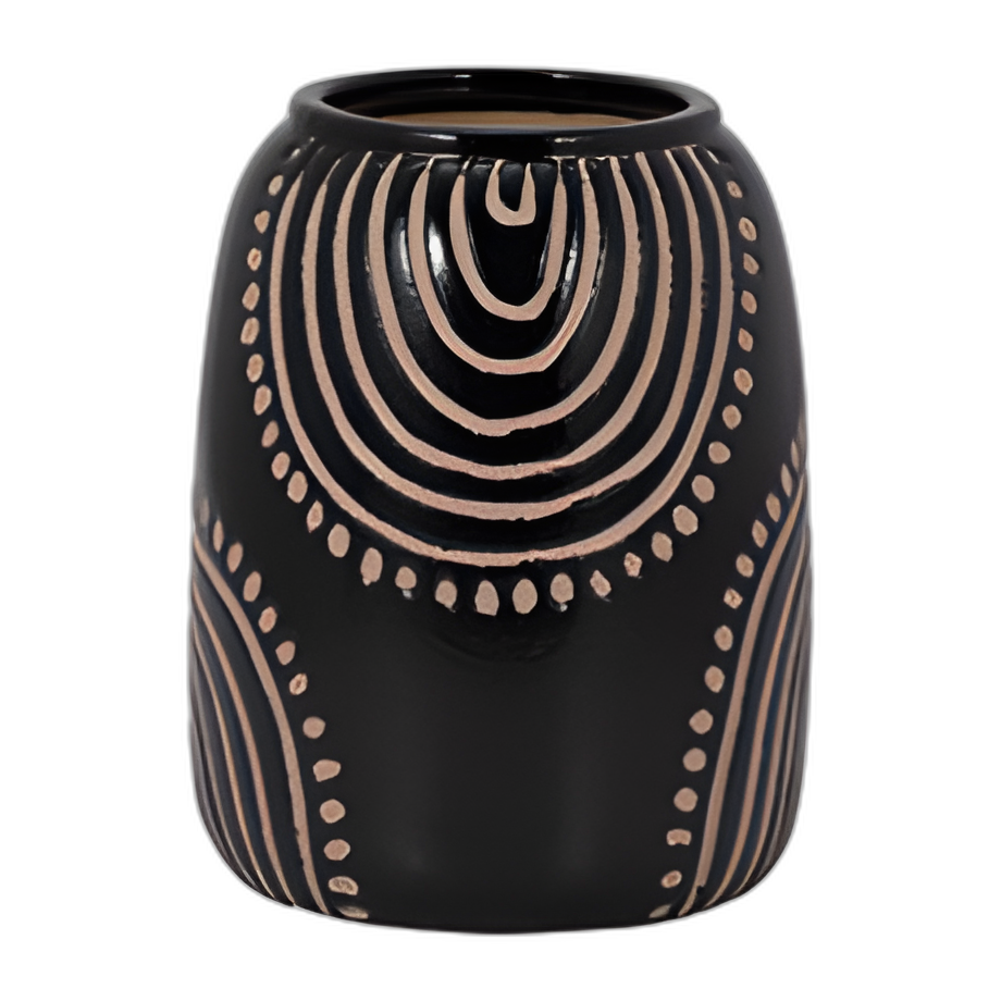 CER, JARRÓN DE ARCO TRIBAL DE 9´´ , NEGRO/BRONCEADO