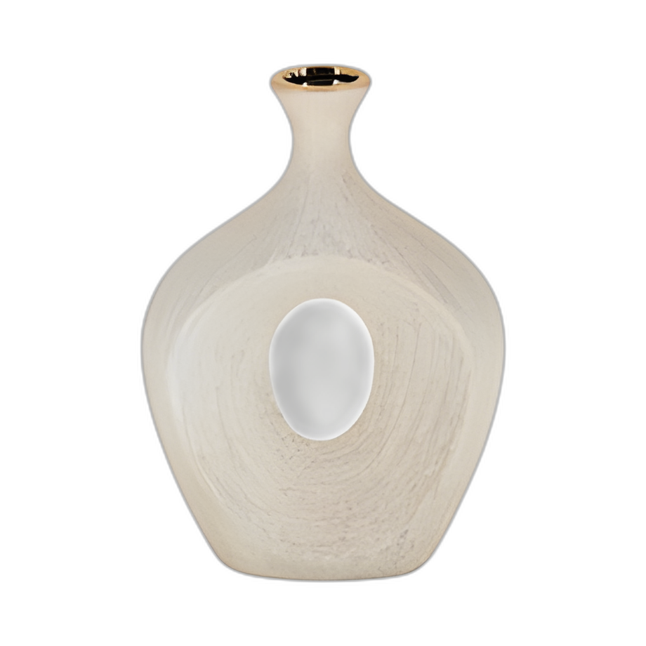 CORTE DE JARRÓN OVALADO CON CUENTAS DE 13´´ CHAMPÁN