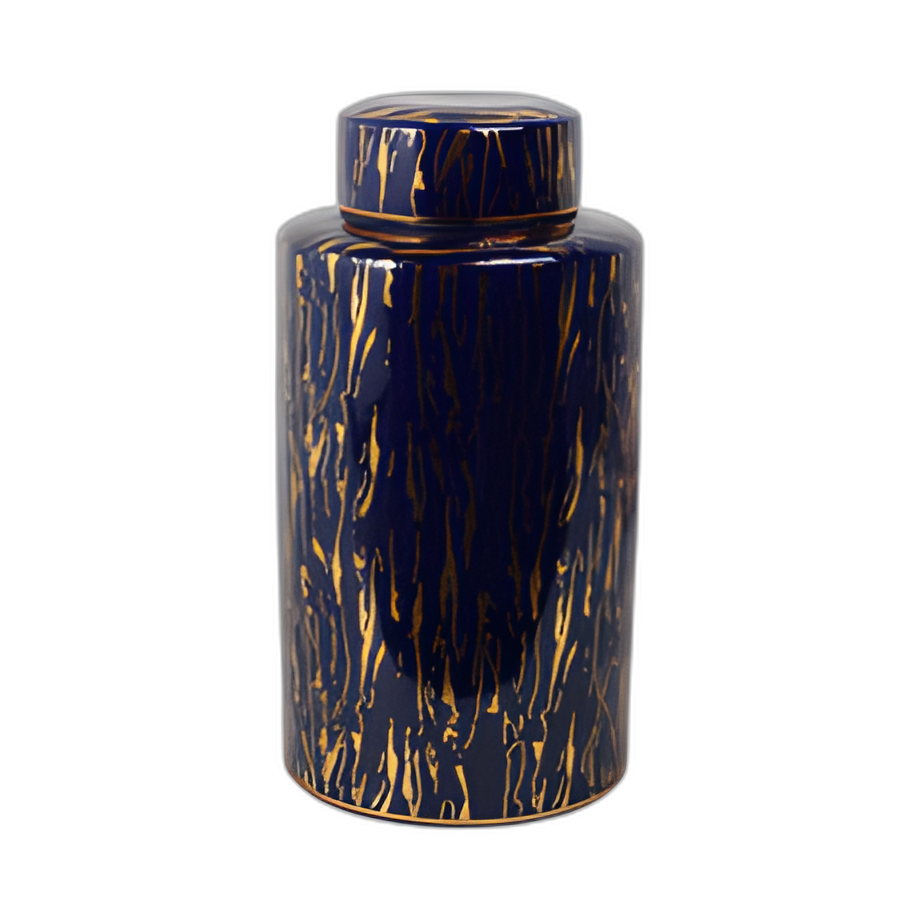 JARRA DE CERÁMICA DE 16´´ H, AZUL/ORO