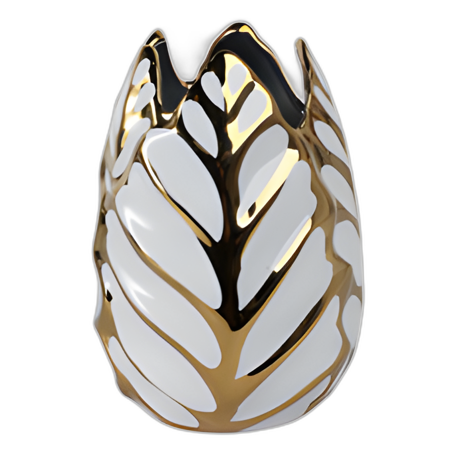 JARRÓN DE HOJAS DE CERÁMICA DE 8´´ , BLANCO/ORO