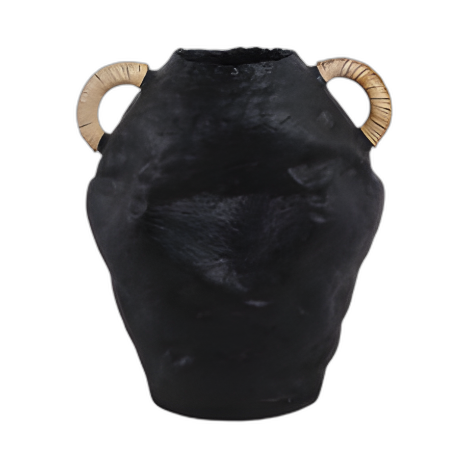 JARRÓN DE JARRA DE TERRACOTA DE 13´´ CON MANIJAS DE RATÁN, BLK
