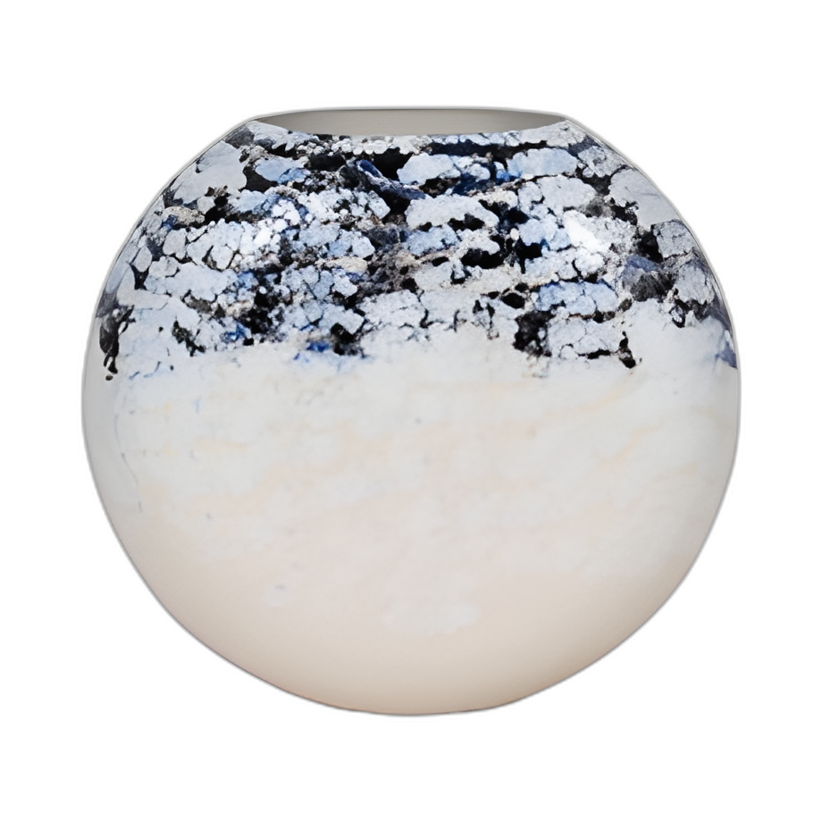 JARRÓN DE METAL REDONDO DE 16´´ ACABADO ÁRTICO, BLANCO/AZUL