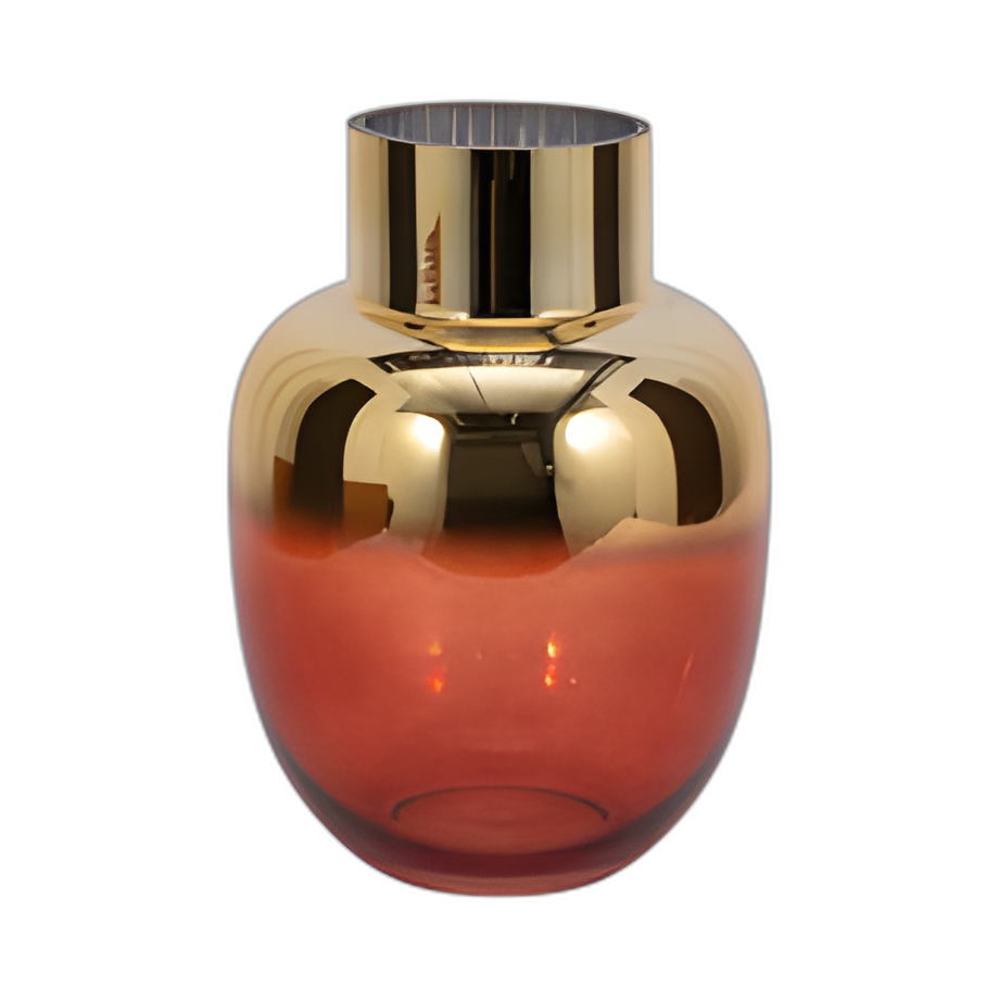 JARRÓN METÁLICO DE VIDRIO DE 12´´ H, ROSA/DORADO