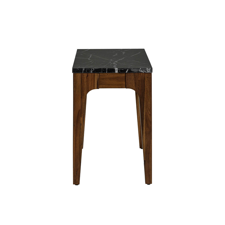 ¡Un refinamiento de mediados de siglo! Los ricos tonos de madera de nogal, combinados con el elegante mármol negro, crean una apariencia refinada.