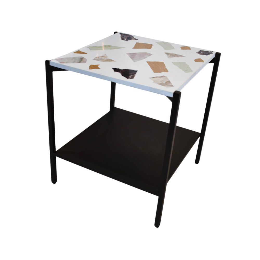 MESA AUXILIAR DE TERRAZO – LATÓN Y MOSAICO BLANCO