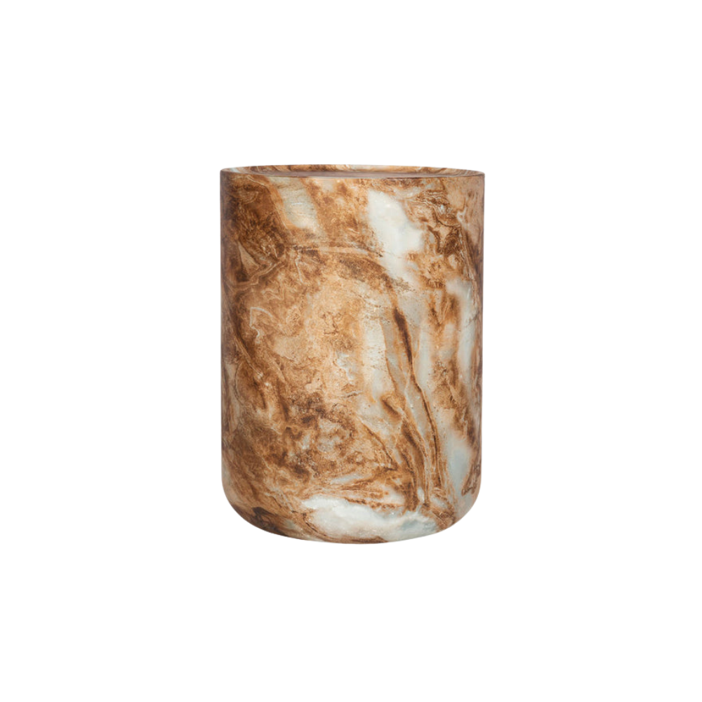 Esta mesa auxiliar, hecha de hormigón con un elegante acabado beige mármol, es una obra maestra versátil que encarna tanto la función como la belleza.