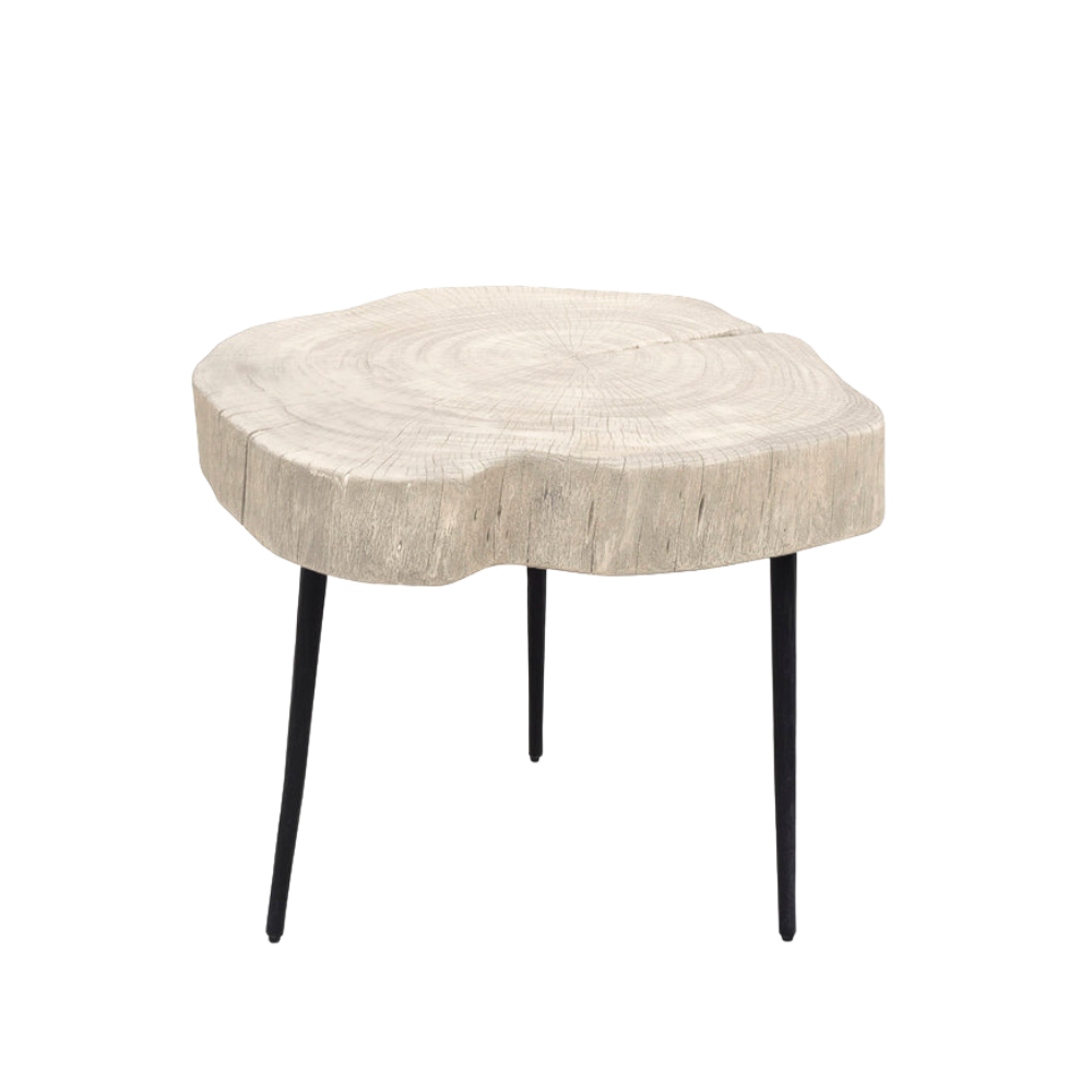 Nuestras mesas auxiliares de tronco orgánico están hechas de madera natural de acacia. Como cada pieza es única y se corta del tronco de un árbol, para minimizar el desperdicio, el diámetro puede variar entre 10 y 12,5 cm.