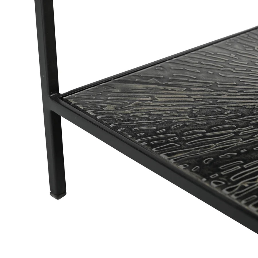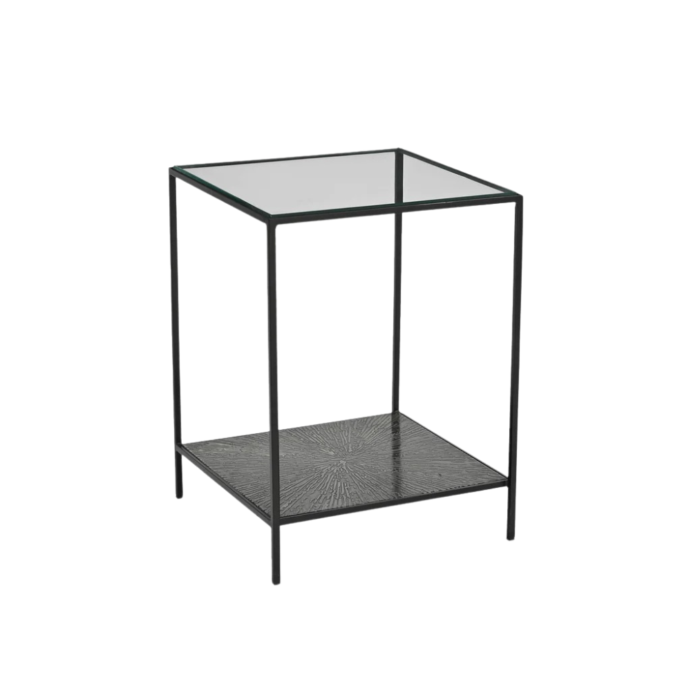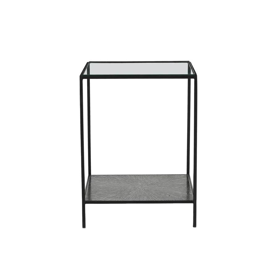 ¡Diseñada para ser audaz! Esta pieza cuenta con una cubierta de vidrio templado y un elegante acabado de metal negro, que le da un toque moderno e industrial a cualquier espacio.