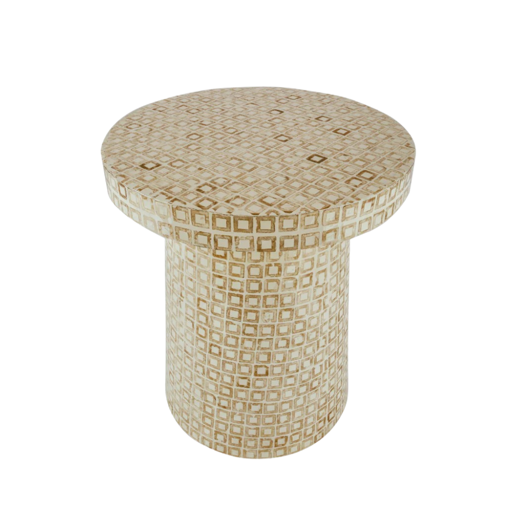 Realza tu espacio con esta reluciente mesa auxiliar, donde conchas marinas incrustadas y radiantes detalles dorados se combinan para crear un impresionante mosaico de elegancia. Una auténtica pieza de conversación que aporta encanto costero y refinamiento artístico a cualquier estancia.