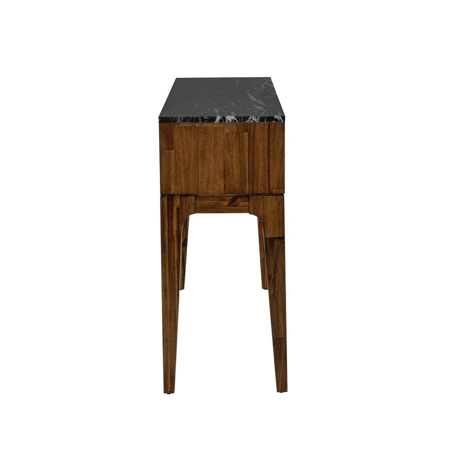 ¡Un refinamiento de mediados de siglo! Los ricos tonos de madera de nogal, combinados con el elegante mármol negro, crean una apariencia refinada.