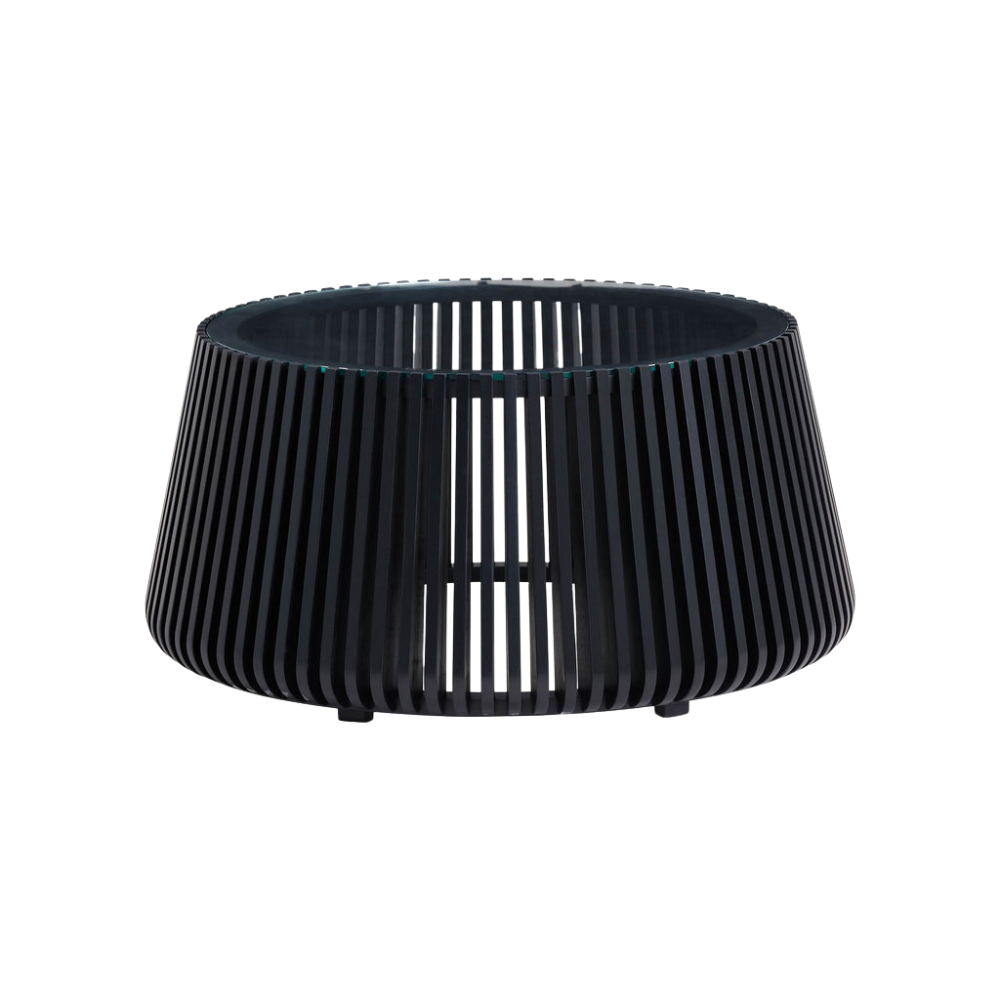 - Con bordes curvos, tapas de vidrio y un acabado negro melancólico para brindar contraste y glamour.