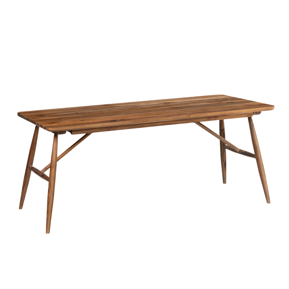 Mejore su experiencia gastronómica al aire libre con una fusión de encanto rústico y elegancia moderna de mediados de siglo. Fabricada en madera maciza de teca, esta mesa de comedor encarna la sofisticación atemporal y rezuma el encanto natural de la región vinícola de la costa oeste.