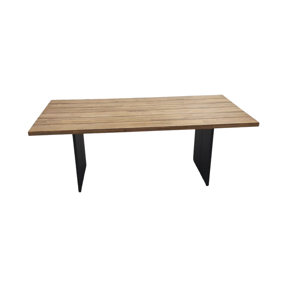Mejore su experiencia gastronómica al aire libre con nuestra pieza meticulosamente elaborada, diseñada para combinar la belleza atemporal de un acabado de teca clara con la resistencia de la madera de acacia y una elegante base de metal con recubrimiento en polvo. Es el complemento perfecto para su espacio exterior y crear reuniones y comidas al aire libre memorables.
