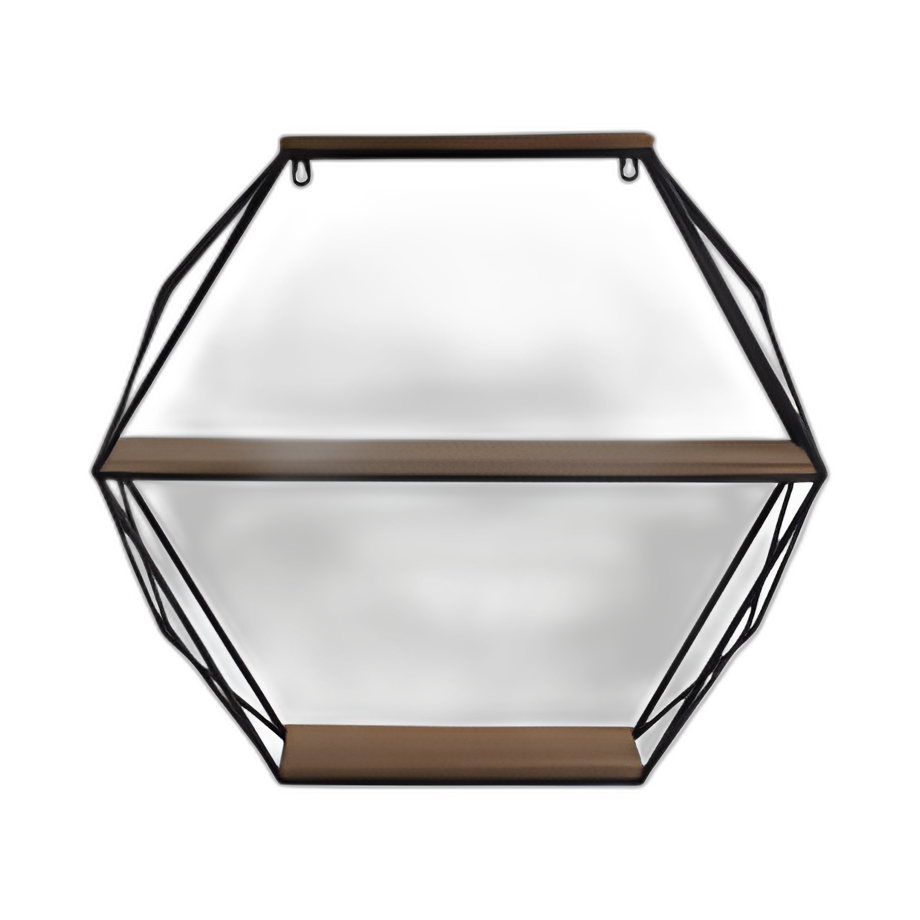 METAL/MADERA DE 3 NIVELES ESTANTE DE PARED HEXÁGONO, MARRÓN/NEGRO