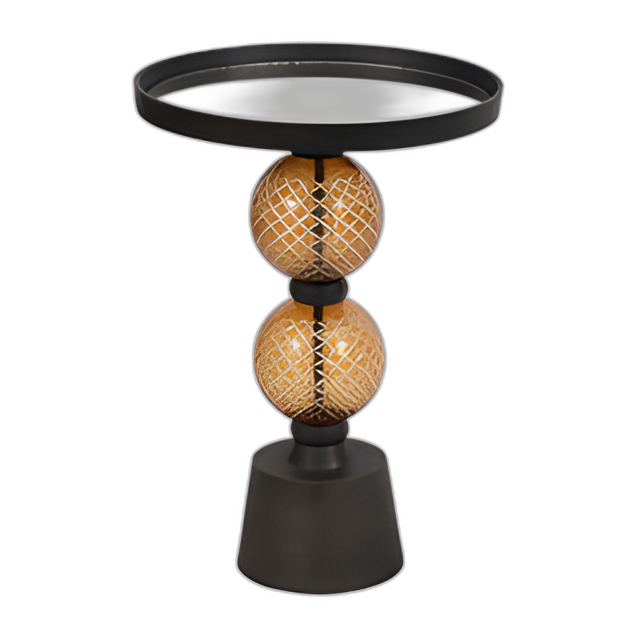METAL, MESA LATERAL ORBE DE 22´´ H, ESPEJO SUPERIOR, GLD/BLK