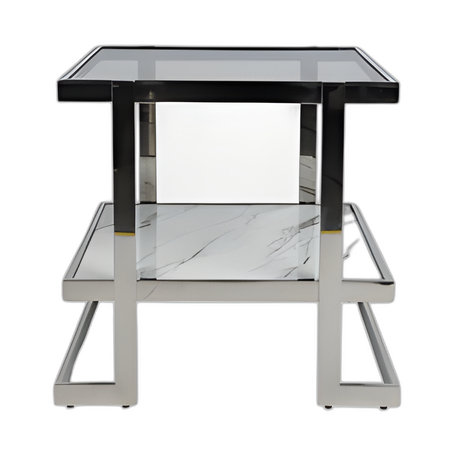 METAL/VIDRIO DE MÁRMOL, MESA AUXILIAR, PLATA/BLANCA KD