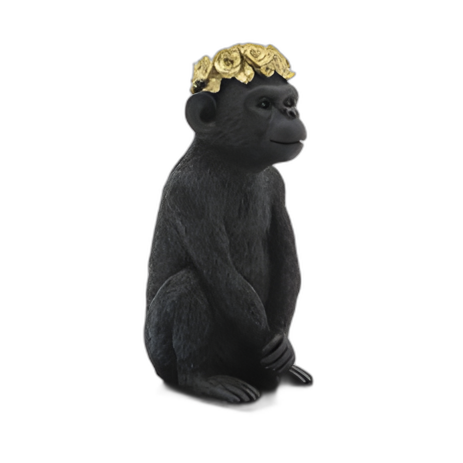 RES, 8´´ MONKEY FLOWER CROWN FIGURINE, BLK/GLD