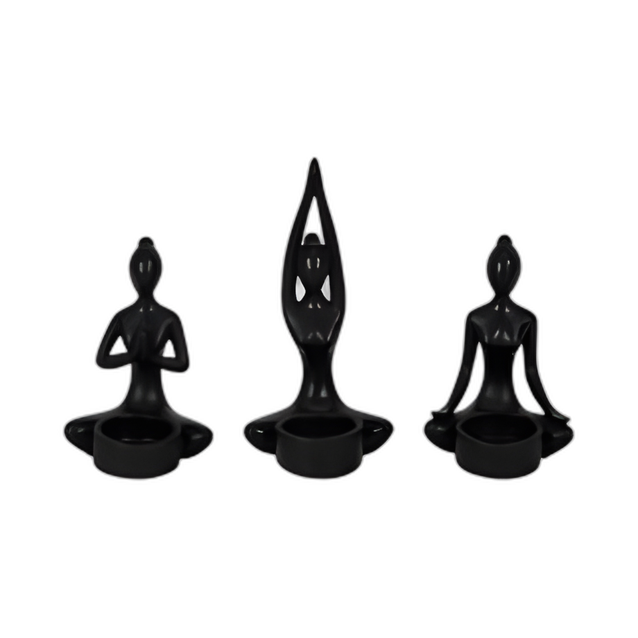 S/3, 7´´ H RESIN YOGA WOMEN TALIGHT TITHERER, BK