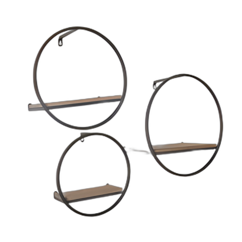 S/3 ESTANTES DE MADERA/PARED DE METAL