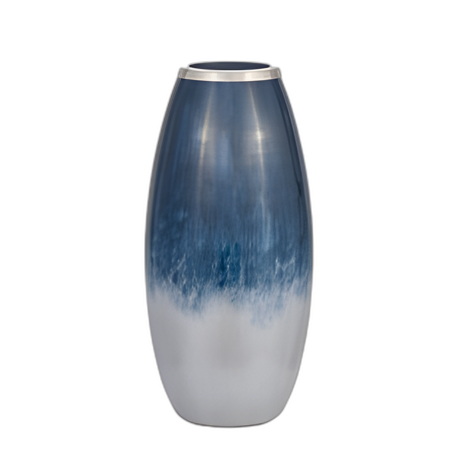 VIDRIO, JARRÓN DE 18´´ H CON BORDE DE METAL, AZUL/WHT OMBRE